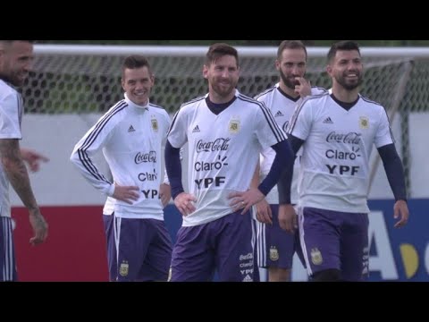 Argentina entrenó el lunes con decenas de niños en las tribunas, que vitorearon cada jugada del astro del Barcelona Lionel Messi. Sergio Agüero apunta al once inicial para el debut frente a Islandia, mientras que la participación de Éver Banega está en du