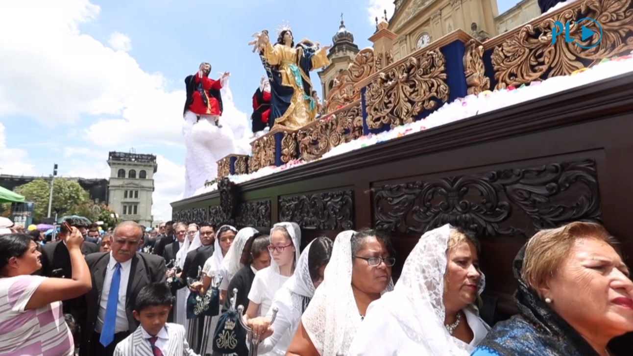 Fieles católicos se dan cita este 15 de agosto en la zona 2 de la capital para participar en la procesión en honor de la Virgen de la Asunción y otras actividades de la feria patronal.