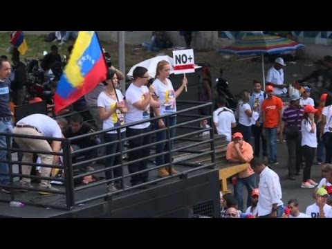 Unos 200 opositores se manifestaron el sábado en una de las principales autopistas de Caracas, a tres años del encarcelamiento del dirigente Leopoldo López, condenado a casi 14 años de prisión.