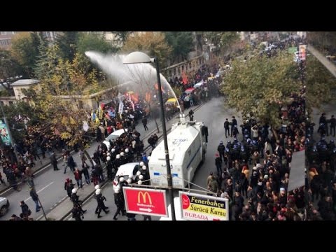 Las fuerzas del orden turcas cargaron contra manifestantes que rechazaban el arresto de varios diputados pro-kurdos, en un clima represivo al que se suma la detención de nueve responsables y periodistas del principal diario de oposición.