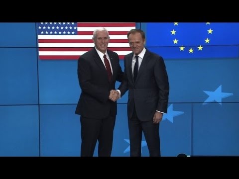 El vicepresidente estadounidense, Mike Pence, inició el lunes una serie de encuentros en Bruselas con los altos dirigentes de una Unión Europea preocupada, en la primera visita de un responsable de la administración Trump acogida entre protestas.