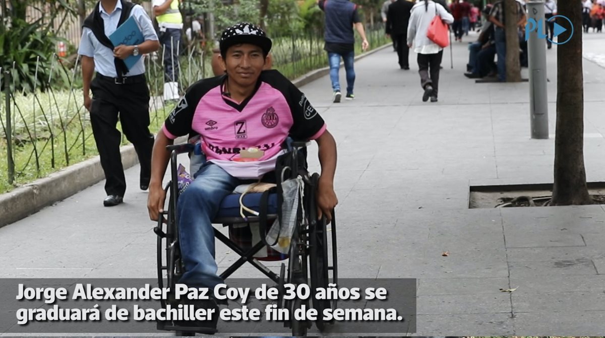 Jorge Alexander Paz superó todo tipo de adversidades para alcanzar un objetivo: estudiar. A los 21 años, un tumor lo dejó en una silla de ruedas. Motivado por sus clientes comenzó a estudiar la primaria, y el 24 de noviembre se graduará de Bachiller.