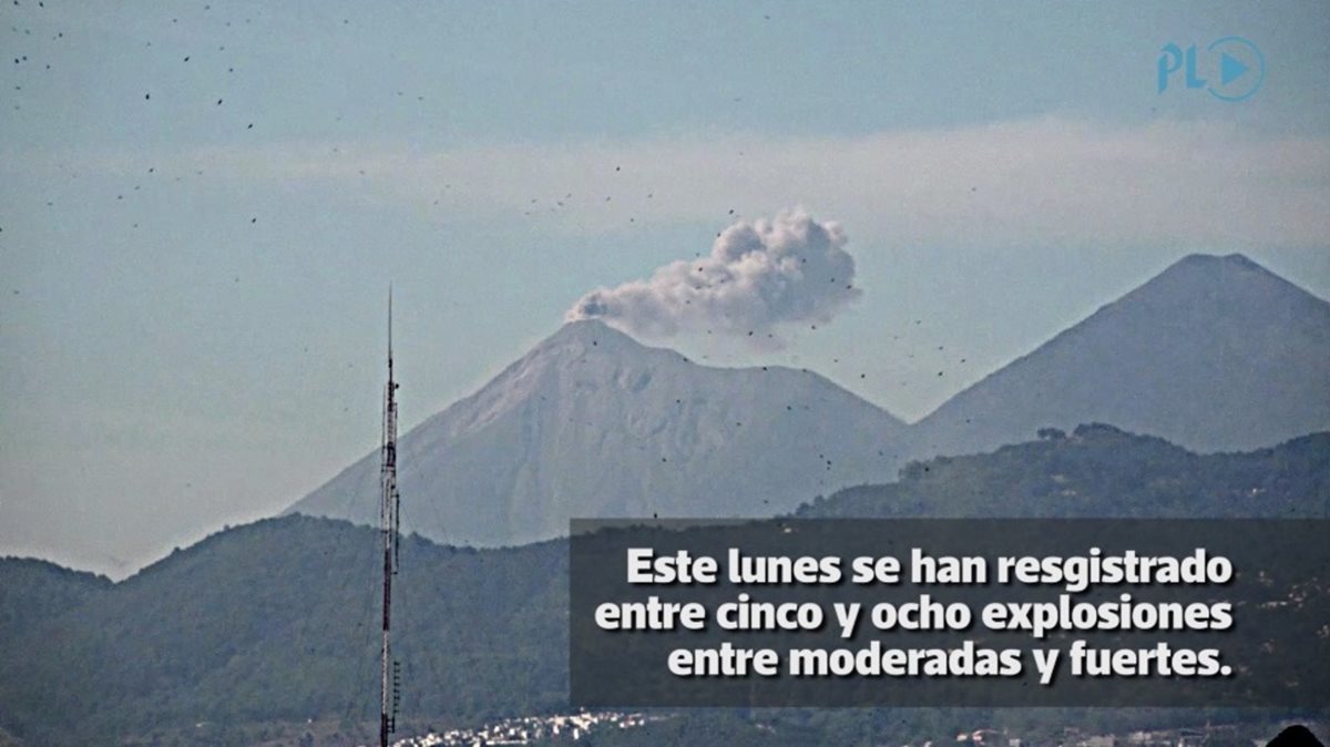 El Volcán de Fuego registra entre cinco y ocho explosiones por hora este lunes, entre moderadas y fuertes, que causan una columna de ceniza de unos cuatro mil 300 metros sobre el nivel del mar. Este time-lapse fue grabado desde zona 1 de la capital.
