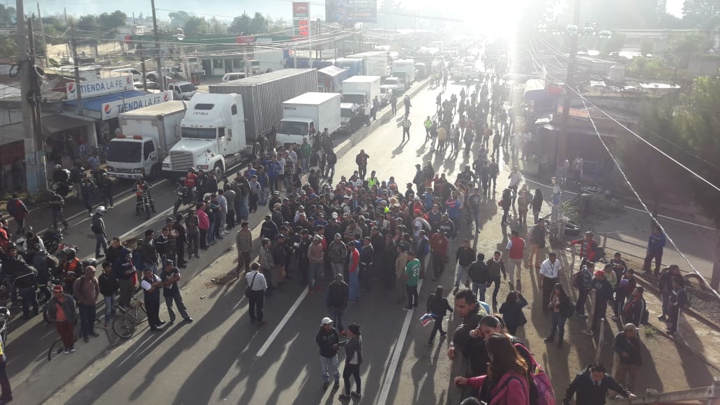El bloqueo está a unos 12 kilómetros del lugar en donde dentro de unas horas será inaugurado el paso por una parte del libramiento de Chimaltenango y afecta ambos sentidos de la ruta Interamericana y la salida de la Ruta Nacional 14.