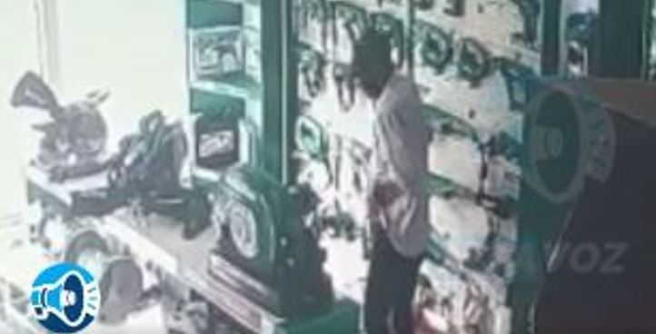 Altavoz Chimaltenango compartió un video en el que se ve cuando un individuo ingresó a una ferretería para robar mercadería.