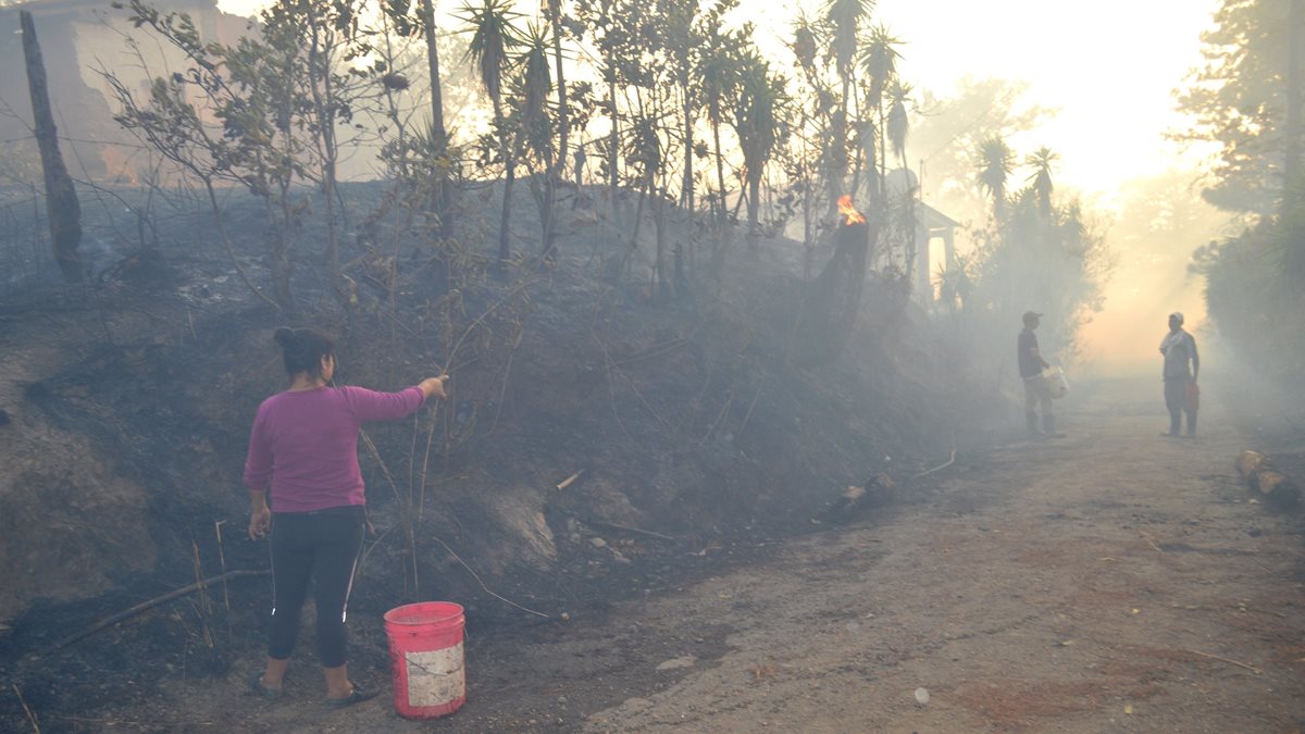 Vecinos de las comunidades de El Obispo, Liquidambar y Hacienda Los Iten, iniciaron desde la madrugada de este domingo las labores contra incendio y llevaron agua con cubetas al área boscosa.Horas después la brigada de bomberos forestales de Sipecif se presentaron a la zona para apoyar a los vecinos.