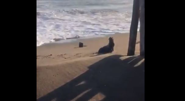 Pero si es cierto, apareció del Mar 🌊 esta hermosa Foca, estuvo unos pocos segundo en la playa y luego retornó. pic.twitter.com/uu7LiHq6mO