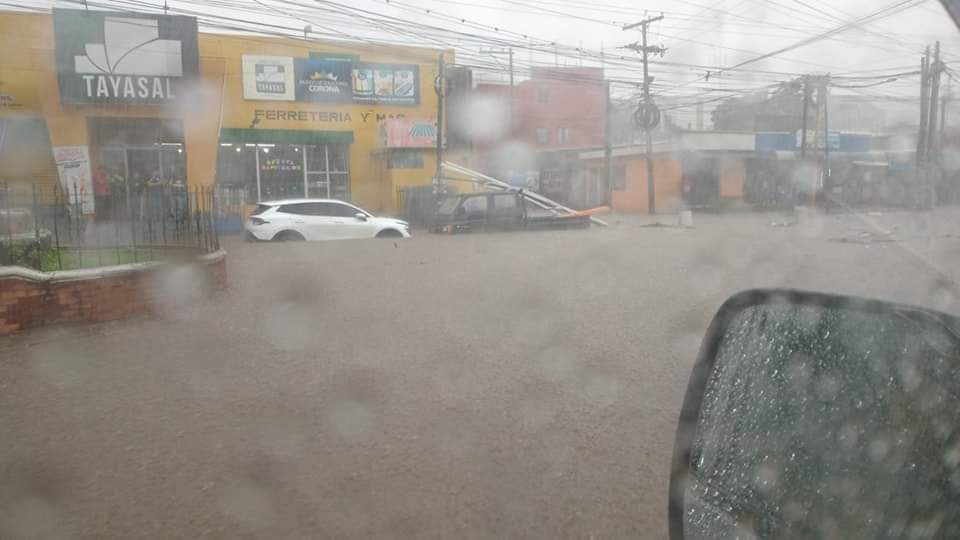 La lluvia de este martes 24 causó inundaciones en Palín, Escuintla. (Foto Prensa Libre: Conred)