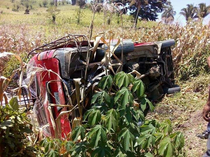 Aún no se conocen las posibles causas del percance. La unidad quedó volcada en un sembradío de maíz.