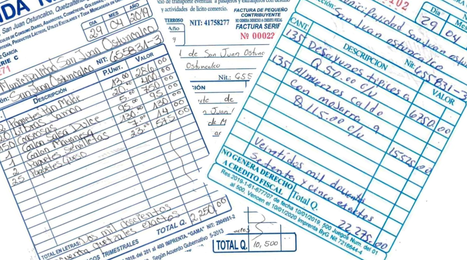Las facturas que la comuna entregó a la organización detallaron qué tipo de compras se efectuaron. Para la refacción durante el viaje se adquirieron 22 paquetes de pan de rodaja, 20 libras de jamón, 25 paquetes de queso, 150 gaseosas, 1 galón de mayonesa, 1 galón de salsa dulce y 2 paquetes de servilletas para un total de Q2 mil 250.