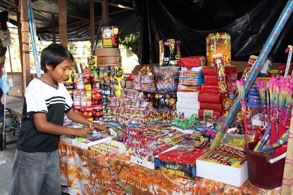 Un niño ordena una  venta   de juegos pirotécnicos    en la cabecera  de Retlahuleu.