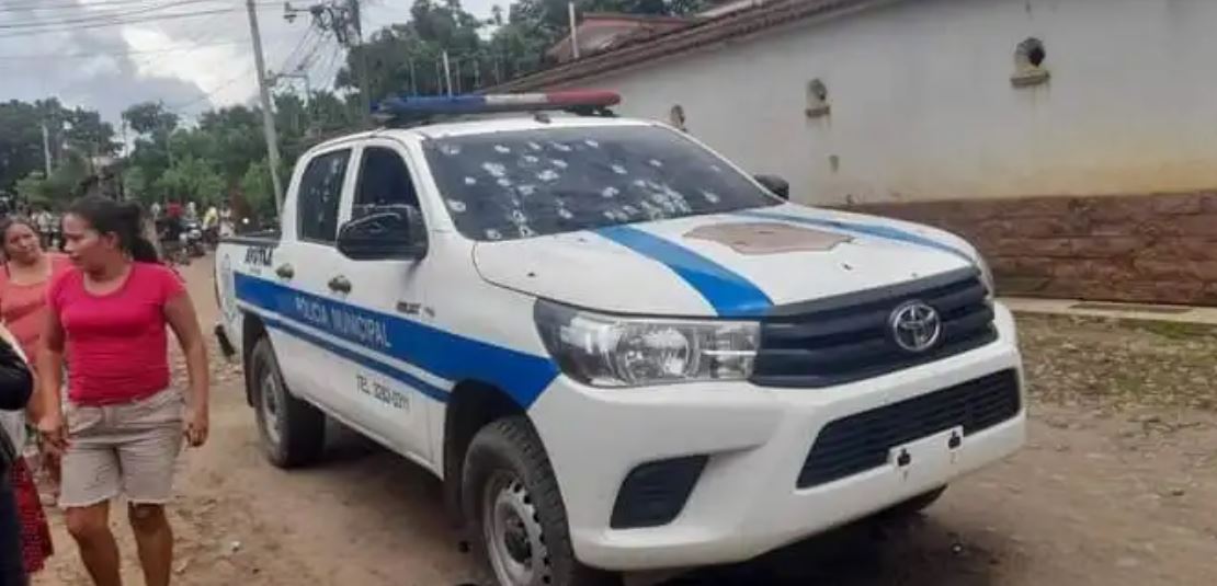 El martes recién pasado, a eso de las 12.30 horas en el caserío Esquipulas, agentes de la Policía Municipal fueron atacado por sicarios que les dispararon desde otro vehículo con armas de grueso calibre.
