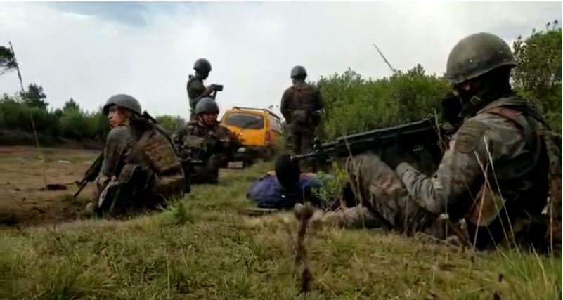 En un segundo video se ve cuando los soldados van escoltando a los pobladores mientras salen del lugar del conflicto.