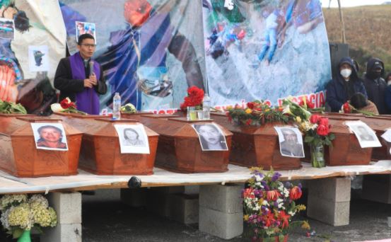 Este lunes, decenas de pobladores mantienen un bloqueo en el kilómetro 171 de la ruta Interamericana a donde llevaron los féretros de la mayoría de las víctimas y exigir justicia por la masacre sucedido.