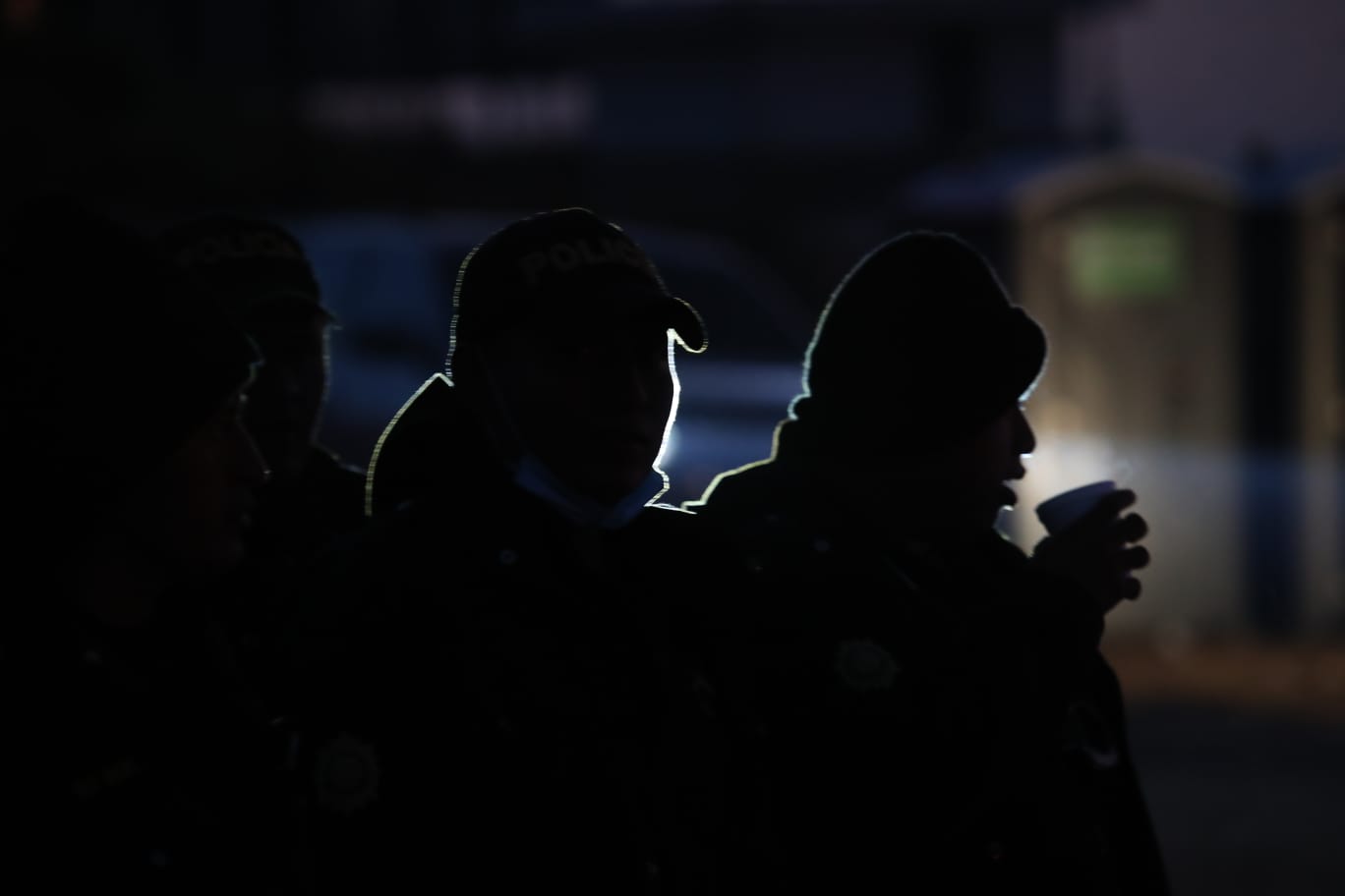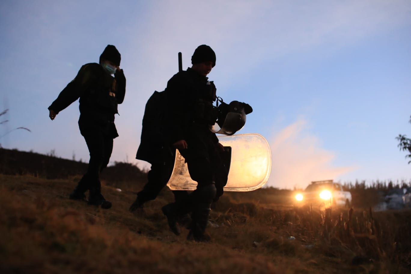 Los agentes se replegaron en un campamento improvisado en el km 170 la Cumbre de Alaska, hasta donde han llegado vecinos para prender fogatas y cocinas café para los policías.