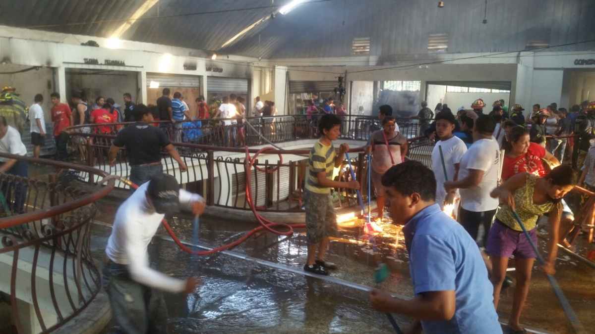 Socorristas de varios municipios participaron en las labores de extinción del fuego. Los vendedores ahora, tratan de limpiar el área siniestrada.