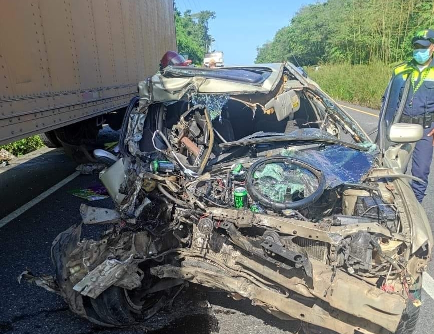 El piloto del tráiler, al percatarse del impacto, detuvo de la marcha para evitar arrastrar el automóvil, se informó.