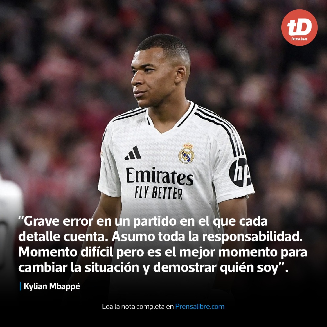Kylian Mbappé aseguró en sus redes sociales que asume la responsabilidad, después de fallar un lanzamiento de penalti en el partido del Real Madrid contra el Athletic Club.