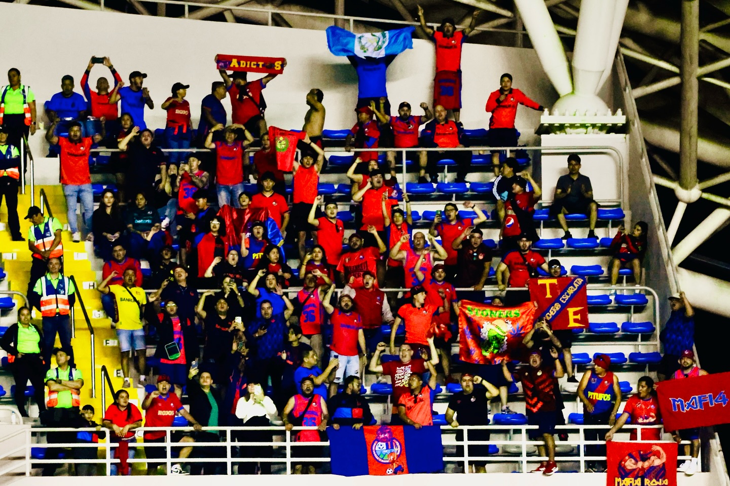 Un buen grupo de aficionados de Municipal acompañan al equipo en el Estadio Nacional de Costa Rica.
