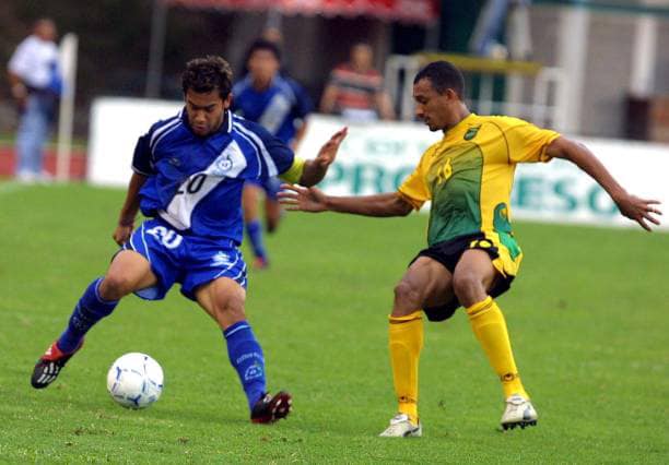 Carlos "Pescado" Ruiz el 31 de octubre de 2002 contra Jamaica. (Foto Prensa Libre: AFP)
