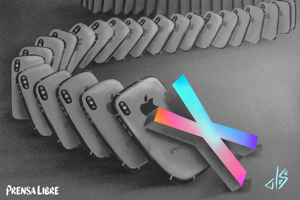 A la multinacional de la manzana no le salieron los números: sus planes eran que en el primer trimestre de este año se fabricaran 40 millones de teléfonos iPhone X, pero esa cifra se redujo a la mitad hasta 20 millones. ¿La explicación? Una expectativa demasiado optimista de las ventas para un modelo que supera los US$1 mil para el consumidor final y un mercado altamente competido. (Ilustración: Diego Sac)