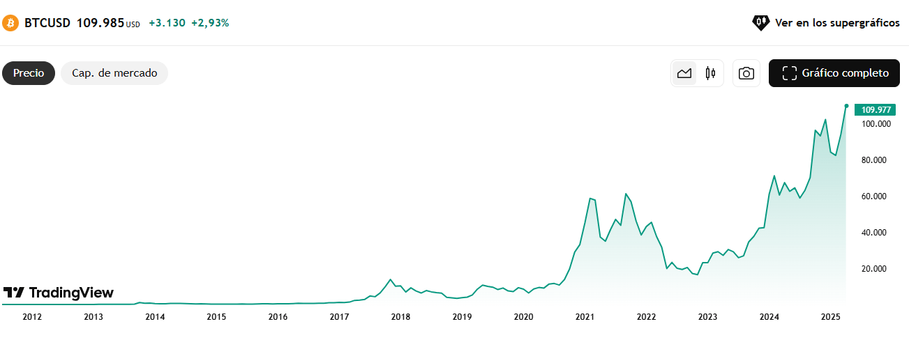 Este nuevo hito supera los US$109 mil 241.11 registrados el 20 de enero, día de la segunda investidura del presidente Donald Trump, cuando la criptomoneda experimentó una subida tras semanas de incertidumbre por la falta de políticas claras hacia los criptoactivos en Estados Unidos.