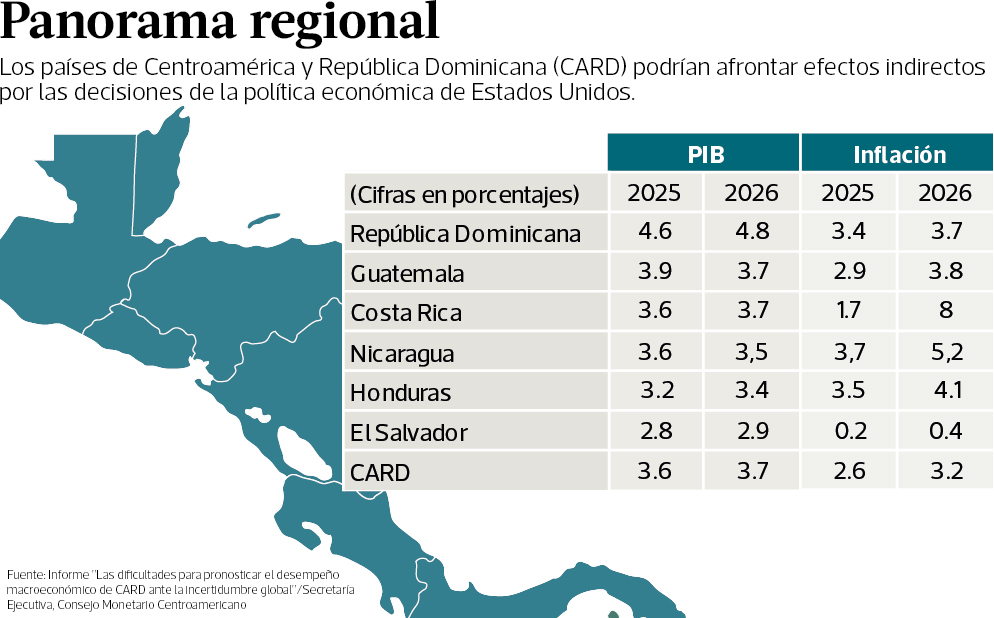 Por lo menos seis factores a las decisiones de política económica que adoptó la nueva administración de Estados Unidos influirán en Centroamérica y se pronostica que el PIB de la región alcance un promedio del 3.6% para 2025 y 3.7% en 2026.