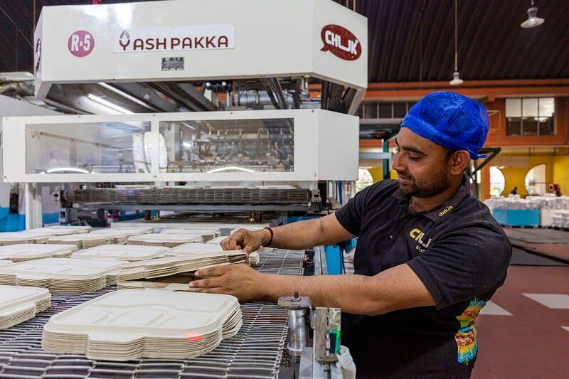 Yash Pakka, ubicado en la ciudad de Ayodhya, en el norte de la India, ofrece productos y soluciones de embalaje compostables, hechos de residuos de caña de azúcar. Trabaja en tres líneas de productos: papel compostable para la fabricación de bolsas (para llevar, sobres, para pan); vajilla compostable para servir y entregar alimentos (platos, bandejas, tazones y contenedores); y empaque flexible (envoltorios).