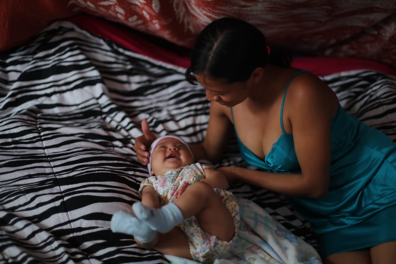 "La bebé es muy risueña, aunque estemos tristes ella nos alegra con sus ocurrencias, y como es la más pequeña la cuidamos bastante" explicó una de las albergadas.