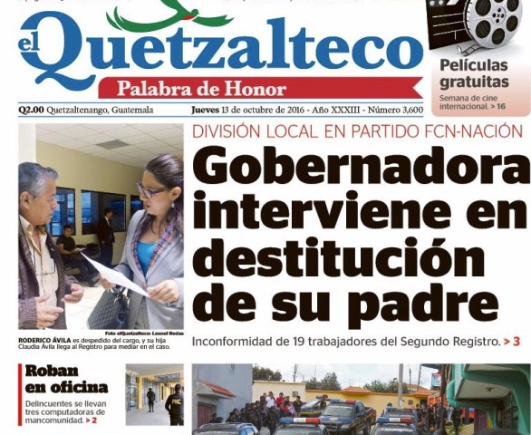 Ayer, la gobernadora de Quetzaltenango, Claudia Ávila, se reunió con el segundo registrador de la propiedad, Marco Arodi Zaso, en la reunión, Ávila habría intervenido para impedir la destitución de su padre, Roderico Ávila, quien tiene 49 años de trabajar en esa institución.