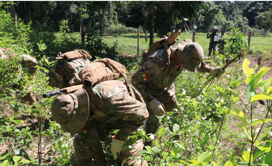Soldados bolivianos erradican plantación de hoja de coca ilegal. (Foto Prensa Libre: EFE)