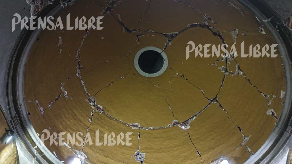 Vista de los daños en la cúpula del templo. (Foto Prensa Libre: Óscar Vásquez)