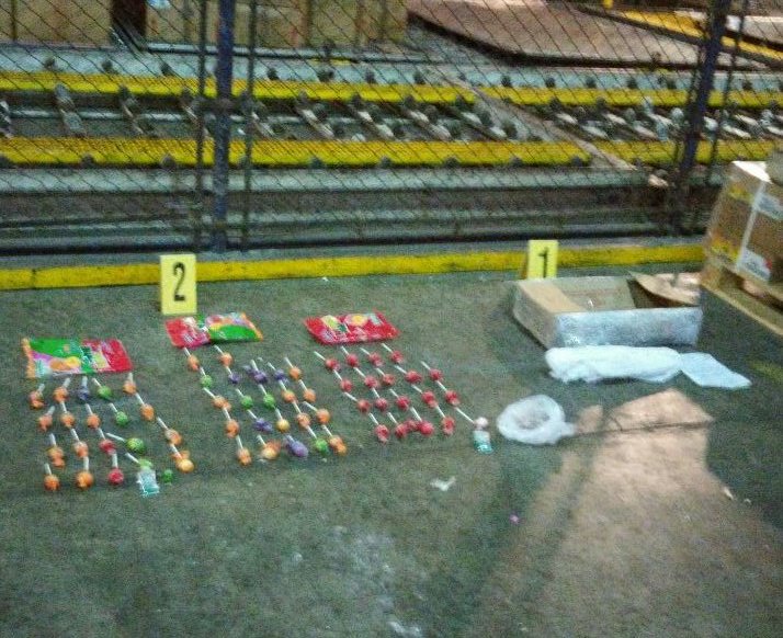Durante inspección en paquetes fueron localizados dulces con sustancia sólida color blanco presuntivo positivo para cocaína 2/2 pic.twitter.com/i9siDkXv2T