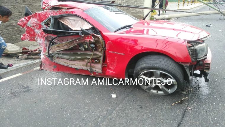 En uno de los más impresionantes accidentes un auto deportivo, Chevrolet Camaro se partió en dos luego colisionar contra postes en el Bulevar Los Próceres, zona 10. Según los cuerpos de socorro el conductor fue trasladado hasta un hospital nacional en estado delicado. El impacto fue de tal magnitud que el vehículo derribó dos postes de alumbrado público y el vehículo quedó dividido en dos partes, separados por alrededor de 60 metros.