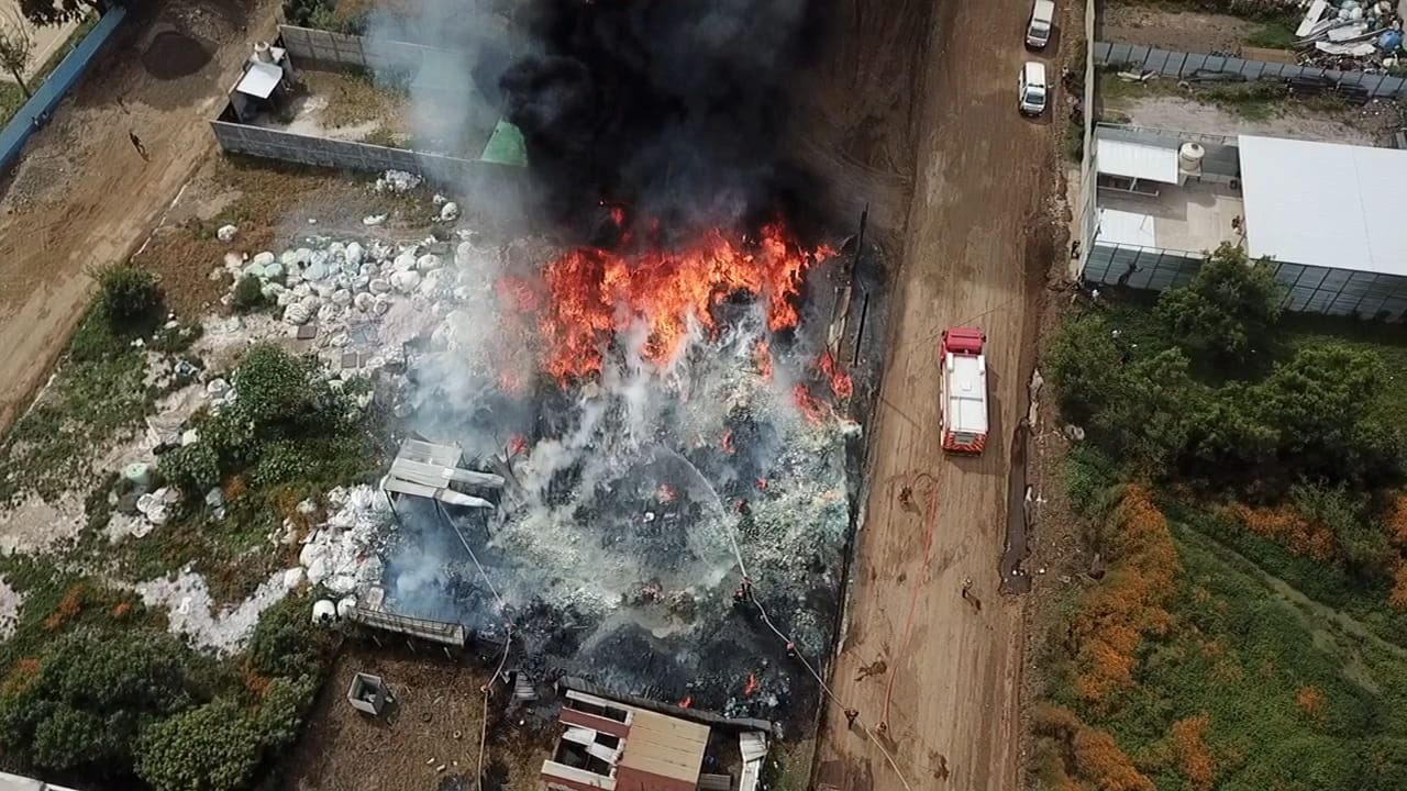 Un video mostraba la densa columna de humo que se elevaba, visibilizando la contaminación causada por la combustión de los materiales de plástico.