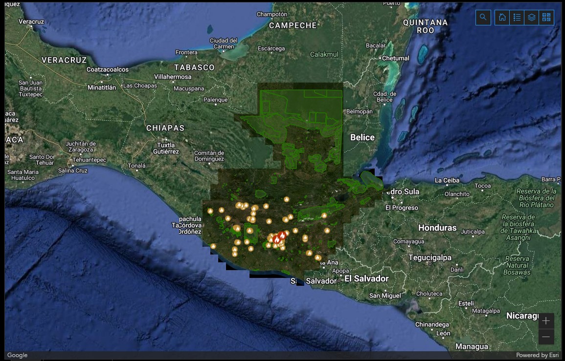 Dos de los puntos de calor se ubican en la Reserva de la Biosfera Maya, en la zona de amortiguamiento de La Libertad, Petén; además, hay otro en Sayaxché, de acuerdo con el mapa de dicho sistema.