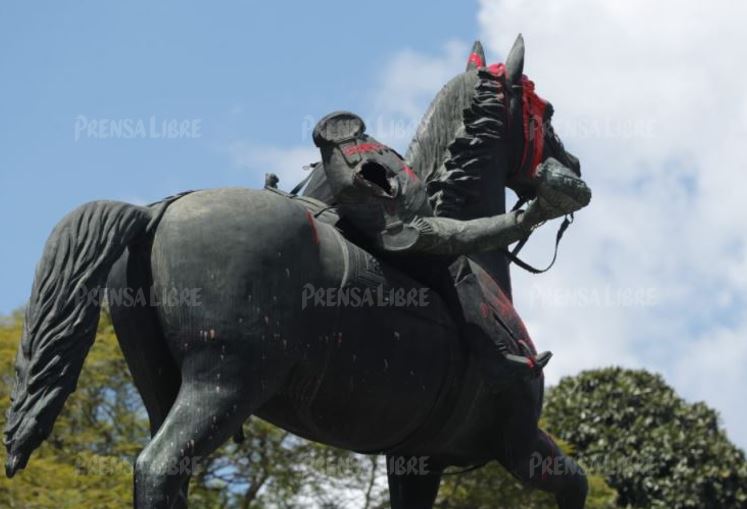 Un grupo de personas que participaba en marchas por el Día de la Hispanidad tomaron cuerdas y ataron monumentos en distintas plazas de la capital con la intención de derribarlos, por lo que causaron daños irreparables en varias joyas históricas para el país.