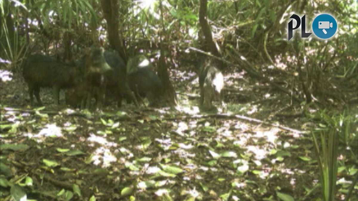 En el video se puede observar cómo aparece una manada completa de pecaríes buscando alimento entre los senderos del área protegida.