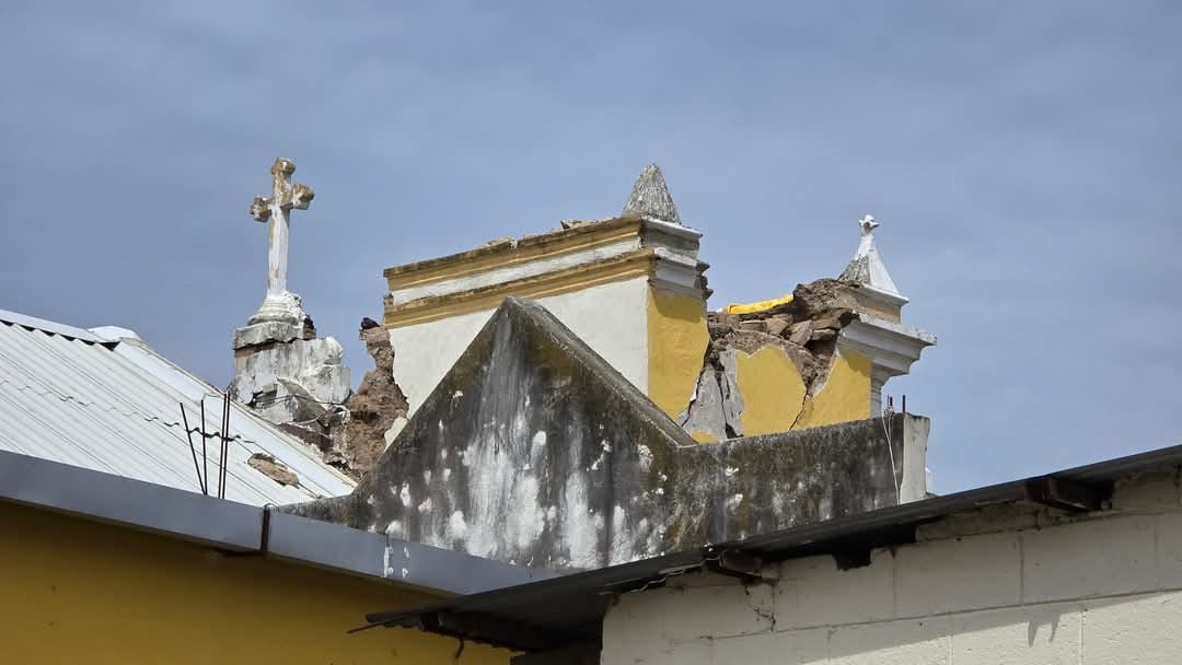 El enjambre sísmico que afecta al centro y sur de Guatemala causó daños a la parroquia San Vicente Mártir, en San Vicente Pacaya, Escuintla. (Foto Prensa Libre: Conred)