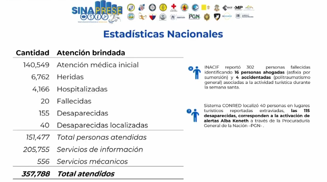 La Conred compartió los resultados del Sinaprese durante la Semana Santa 2025 en Guatemala.