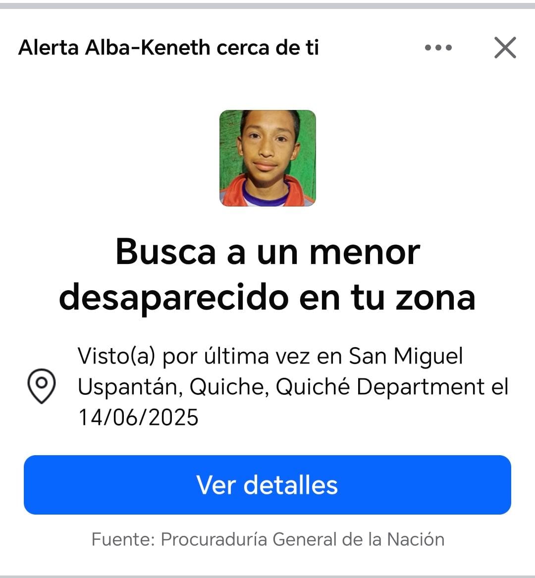 - Cuando el menor es localizado, debe ser presentado ante una autoridad competente: la Unidad Operativa ubicada en la zona 8 capitalina, la Policía Nacional Civil o las Delegaciones Regionales de la PGN, para verificar su resguardo y el motivo de su desaparición o si hubo vulneración de sus derechos humanos. Si esto no sucede, la alerta continúa activa, según lo establece la ley.