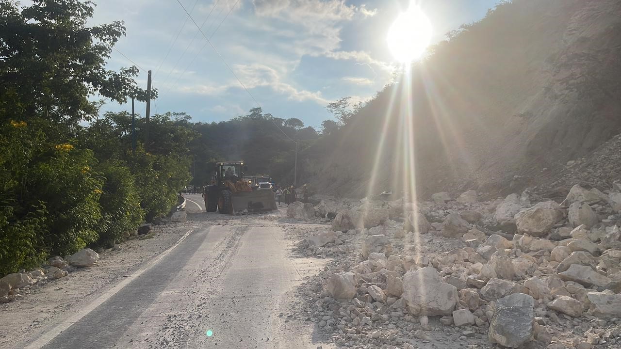 Un derrumbe se produjo en el kilómetro 61.8 de la carretera al Atlántico y obstaculizó varios carriles