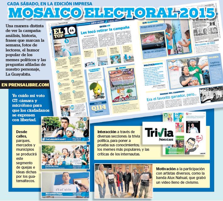 Prensa Libre mantiene el liderazgo informativo en sus diversas plataformas y este se enriquece con productos editoriales que permiten ver de otra manera la actividad de partidos y candidatos, pero también se abre un espacio destacado a la expresión ciudadana, los valores cívicos y una cierta dosis de humor crítico.
