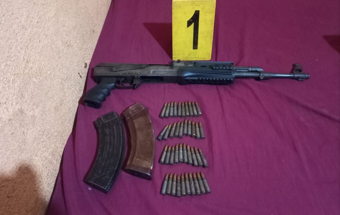 Explicaron que en el inmueble se localizó un AK-47, dos cargadores para esta arma, 68 municiones calibre 7.62 también para ese fusil de asalto y que es de uso exclusivo de las fuerzas de seguridad.