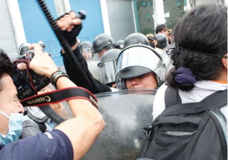 Hernández dijo que los agentes usaban sus escudos para impedirles el paso, pero en ese momento uno de los policías lo atacó con la macana.