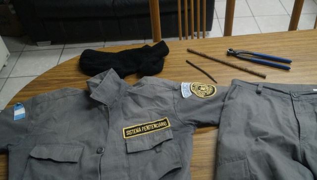 Comentó que inmediatamente se efectuó una requisa. “Durante la misma se localizó una caleta, un uniforme de guardia penitenciario, un gorro pasamontañas y herramientas para cavar”, detalló.