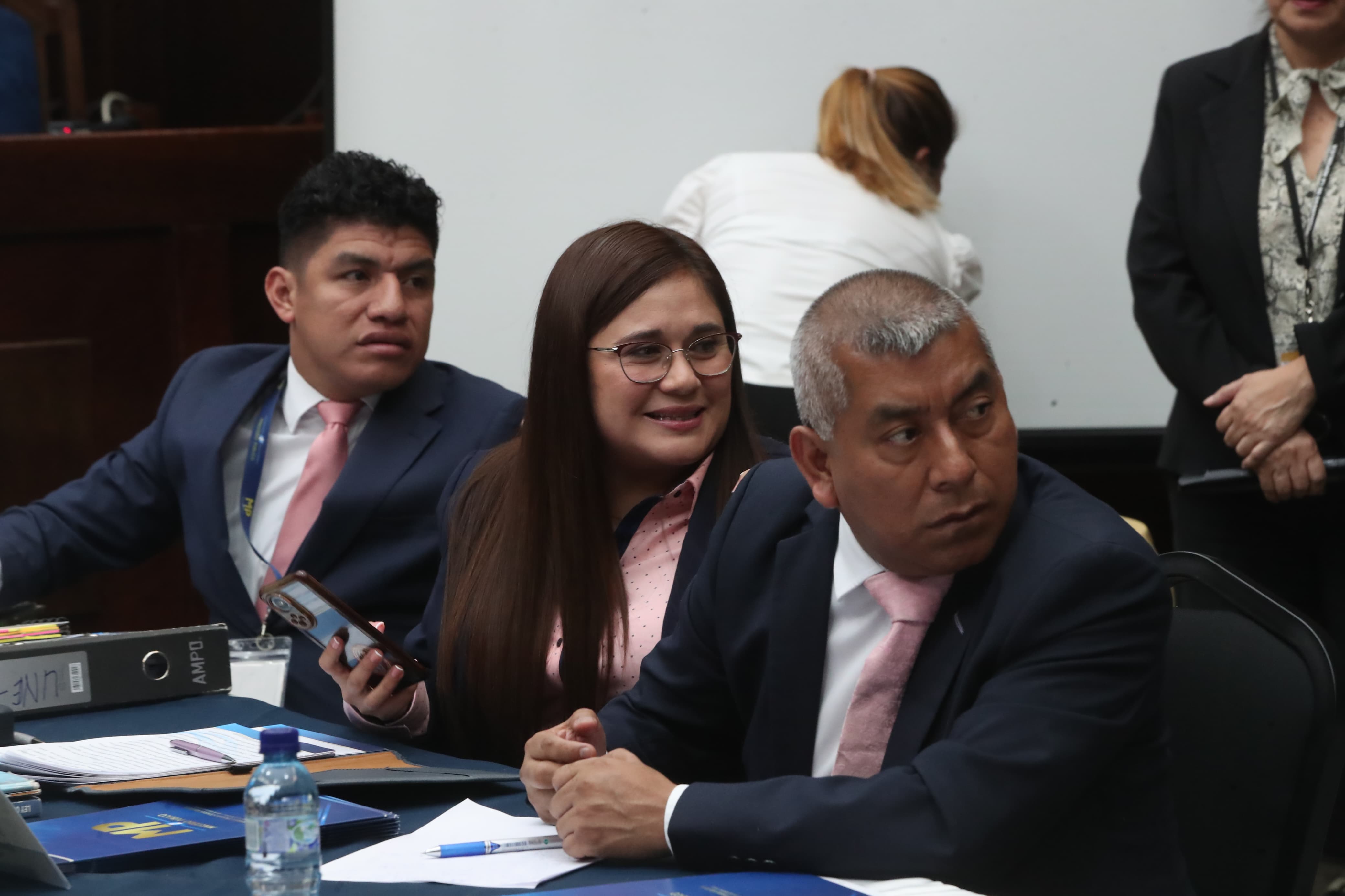 El expresidente Alejandro Giammattei y Raúl Romero durante las votaciones para la elección de la Junta Directiva del Parlacen. (Foto Prensa Libre: María Reneé Barrientos)