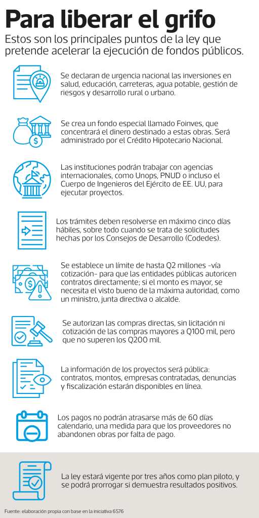 El artículo 6 busca agilizar los trámites de inversión mediante los Consejos Departamentales de Desarrollo (Codedes), cuyas solicitudes podrán ser autorizadas en un plazo de cinco días.