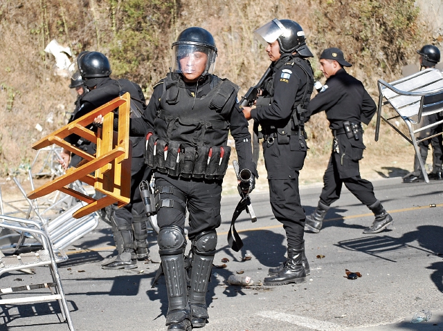 Agentes de la PNC se han enfrentado contra pobladores de Huehuetenango en varias ocasiones por problemas sociales que llevan a la ingobernabilidad.  (Foto Prensa Libre: Hemeroteca PL)