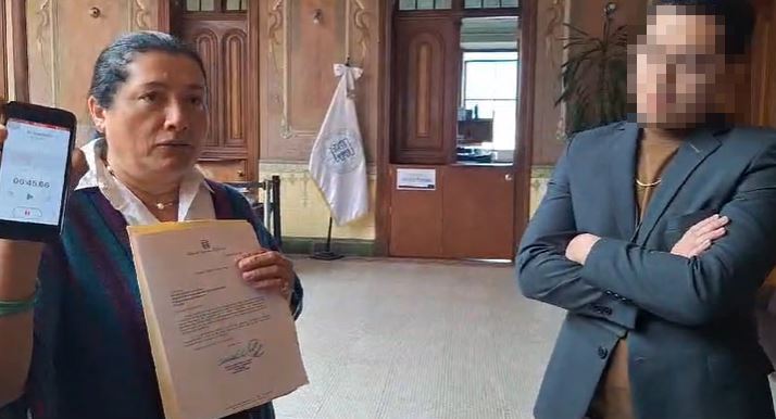 En el video se observa que Alfaro se dirige al joven y le dice: “Usted sabe lo que corresponde, y el teléfono, por supuesto, que en estos momentos lo mandamos al Ministerio Público con una denuncia correspondiente. Señor secretario, y levantamos un acta notarial que efectivamente yo le solicité el teléfono y el teléfono era porque nos estaba grabando a todos. ¿Con qué fines? No sabemos”, señala la magistrada Alfaro.